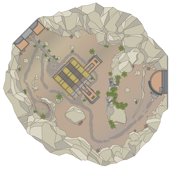 For this project, we created pseudo-3D vector art maps for the main storyline in addition to conventional top-down Firefight multiplayer maps. Created in Adobe Illustrator from video footage supplied as reference material for development.